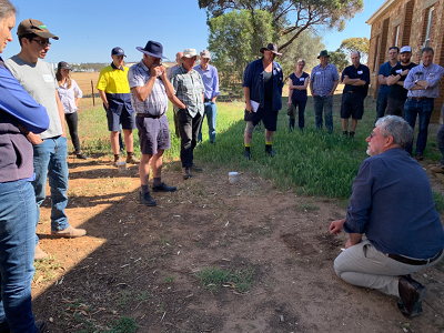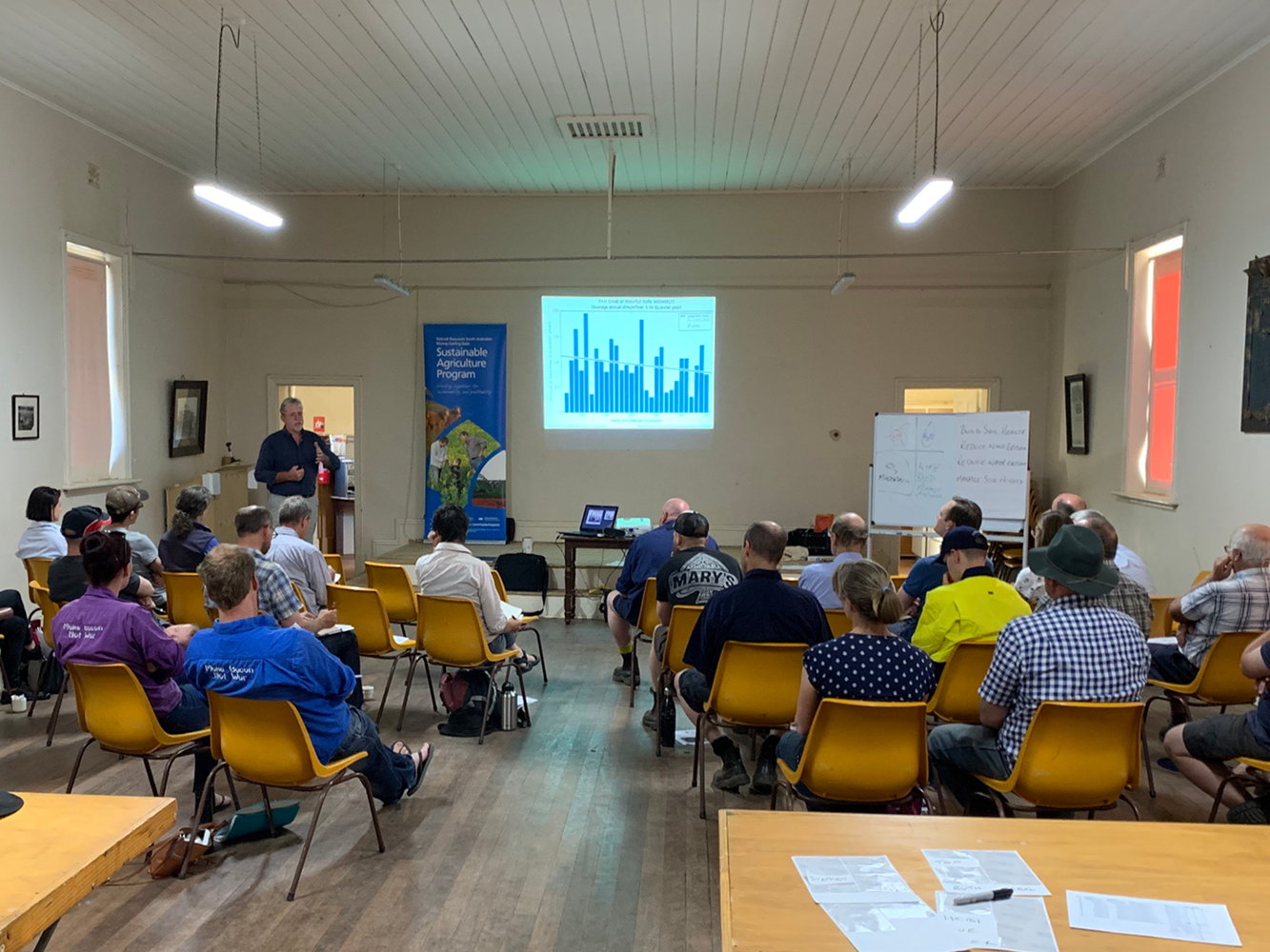Brian Marshall and Brian Wehlburg presented on improved soil management practices at the Belvidere Memorial Hall near Strathalbyn, SA, with an EOV field demonstration at a farm near Stokes Bay, Kangaroo Island SA. (Click for larger images.)